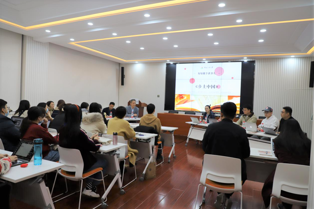 活动开始,贾文斌同学介绍了参加本次读书会的老师和分享心得的五位学生。李智教授帮助同学们辨明了书中的部分概念并深入解读了《乡土中国》。