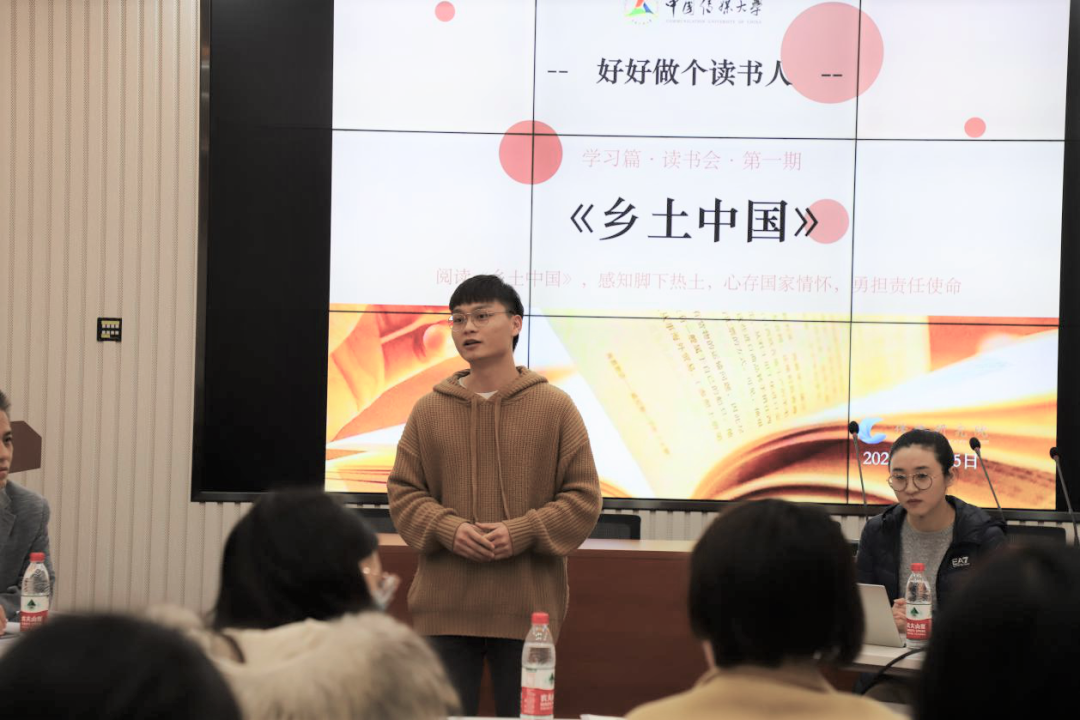 第一位分享者是2020级博士研究生张文慧。张文慧介绍了作者费孝通先生的生平,并仔细讲解了《乡土中国》每章的内容。张文慧的讲述条理清晰,带领同学们快速回顾了整本书的脉络。