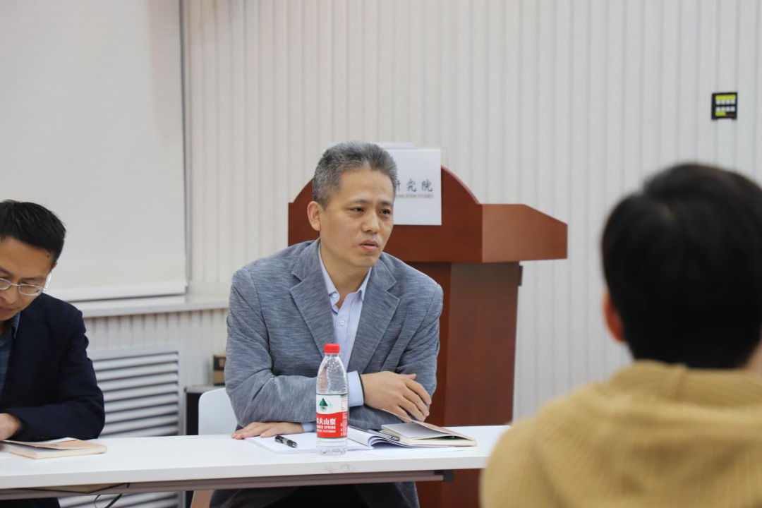 在五位同学都分享了自己的读后感后,李智教授进行了点评。他肯定了各位同学在本次活动中的优异表现,并指出了同学们分享中的不足。在深入解读《乡土中国》的基础上,他以自己丰厚的知识,对在场的同学们提出了三点建议:第一,我们不要在一套话语体系里评判属于两个不同话语体系的事物;第二,我们做学问要“既有品,又有趣”,要将自己的经历与学术研究结合在一起;第三,我们要致力于学术话语权建构,在做研究特别是做社会研究时,不仅要由内而外,还要由外而内;不仅要由下而上,还要由上而下;不仅要近观,还要远观。他还指出,中国现在的传播学研究还是建立在西方的学术话语系统上的,因此我们之后的研究要扎根于中国的土地,吸收西方学术界的营养,既要“入乎其内”,又要“出乎其外”。