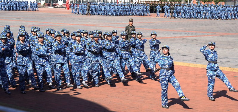 我院女生所在的四连三班作为分列式方队,踏着《分列式进行曲》的节拍,整齐走过观礼台。她们步伐铿锵,呼号嘹亮,成为训练场上一道亮眼的风景线。男生所在的三连三班作为特色科目方队,展示了单个军人队列动作这一基础军训科目。轴承般整齐利落的转法,白杨般挺拔昂扬的军姿,无不是他们刻苦训练精神的写照。