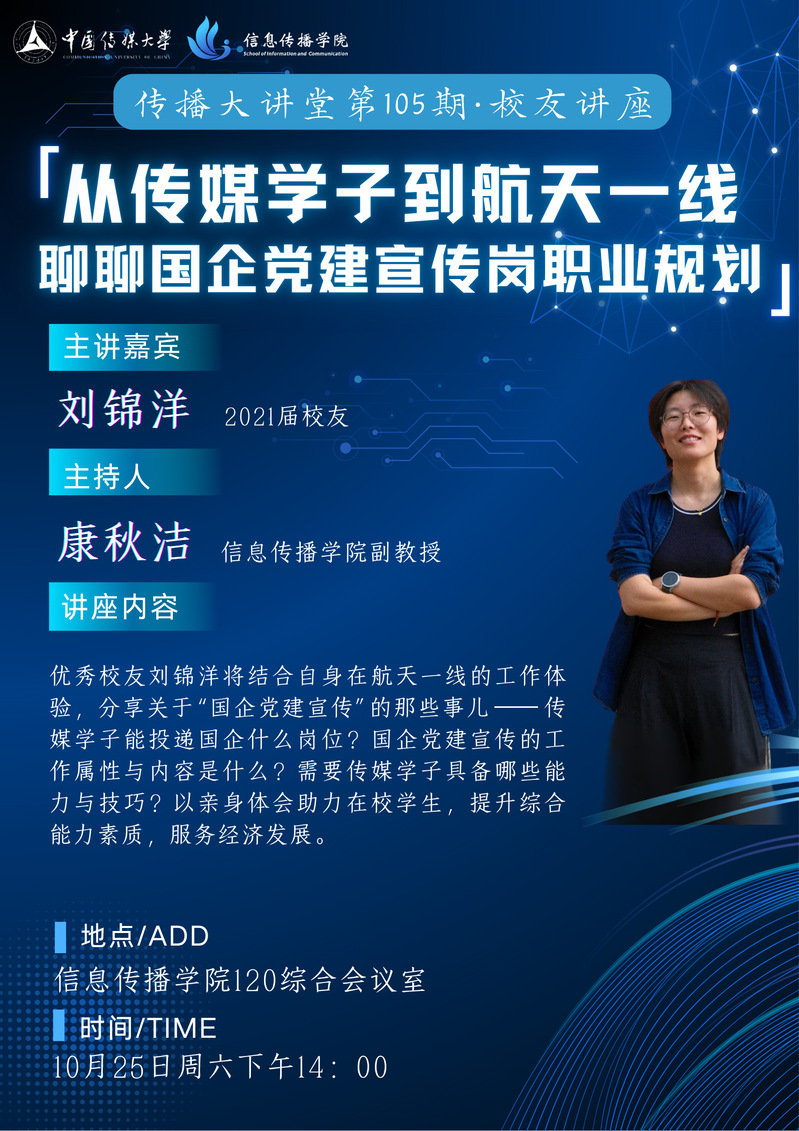 传播大讲堂第一百零五期|从传媒学子到航天一线:聊聊国企党建宣传岗职业规划