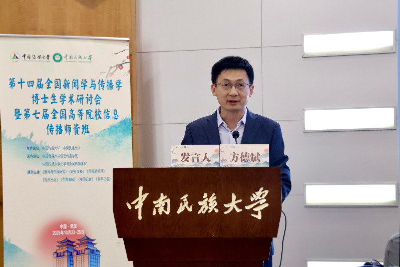 2025年10月23日至25日,由中国传媒大学与中南民族大学联合主办的第十四届全国新闻学与传播学博士生学术研讨会,在武汉南湖之滨的中南民族大学学术交流中心成功举办。本届研讨会汇聚了来自清华大学、复旦大学、国防科技大学、厦门大学等全国40余所高校的近两百名博士生、青年教师及学者,围绕“创新与自主:数智化背景下的信息传播”这一主题,展开了深度对话与思想碰撞。