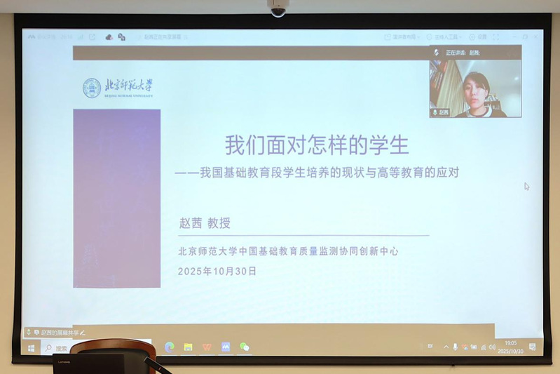 2025年10月30日晚,北京师范大学教育部基础教育质量监测中心、中国基础教育质量监测协同创新中心赵茜教授应邀为信息传播学院教师开展线上专题培训讲座,主题为“我们面对怎样的学生:我国基础教育段学生培养的现状与高等教育的应对”。讲座由信息传播学院副院长张磊主持。