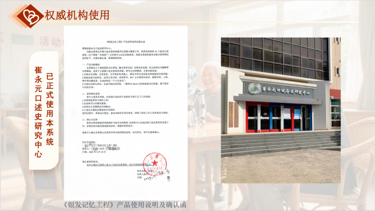 截至2024年末,全国60周岁及以上老年人口31031万人,占总人口的22%。在中国加速迈入深度老龄化的当下,每一位老年人都是时代记忆的鲜活载体,他们独一无二的生命史,镌刻着国家与社会的变迁,也构成民族集体记忆最生动的注脚。然而,传统口述史记录方式受制于高成本、低效率与覆盖率瓶颈,普通录音工具又缺乏叙事引导与方言适配,文本碎片化严重。数字技术虽快速发展,却未必天然友好——不少老年人在“数字失语”与“记忆湮灭”的双重压力下,难以被真实、系统地听见。按照自然消亡速度推算,若不抓紧倾听,每年约有2000万份珍贵的个体记忆将永久消失,这将成为一种巨大且不可逆的文化损失。