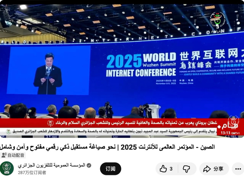 我院留学生、阿尔及利亚国家电视台记者江琳(Taferguennit Sabrine)现场报道了2025年世界互联网大会乌镇峰会,视频新闻在该台的主要新闻节目中播出。