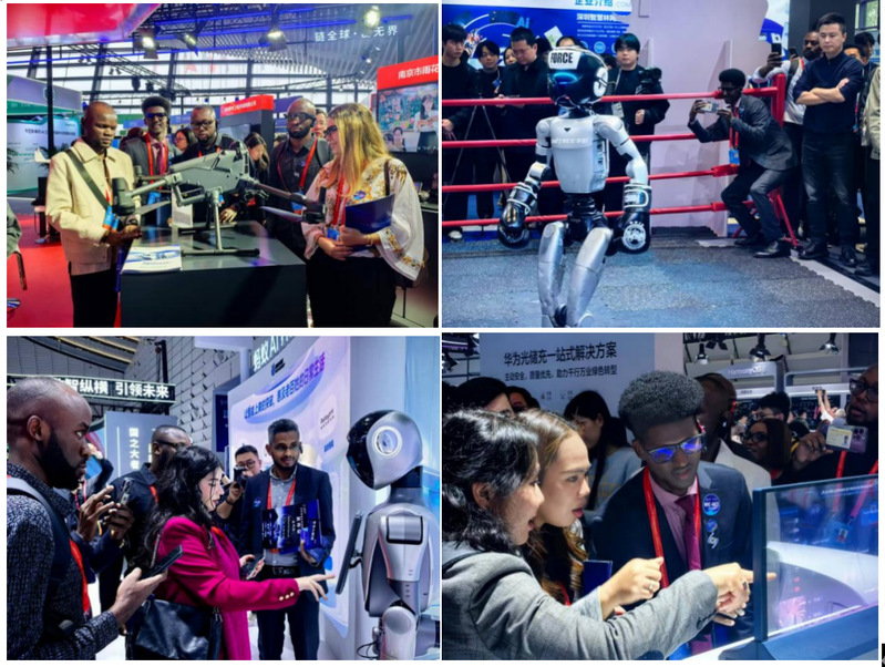 11月6日,2025年世界互联网大会乌镇峰会“互联网之光”博览会开幕,留学生调研团走进博览会,近距离感受“AI共生、智启未来”的“人工智能+”展陈。在大会组织方的安排下,留学生调研团一行重点参观了包括阿里巴巴、华为、科大讯飞、腾讯等在内中国企业的人工智能技术研发与应用产品,沉浸式体验了AI无感筛查、智能眼镜、具身智能机器人、数字飞行模拟舱等技术成果。