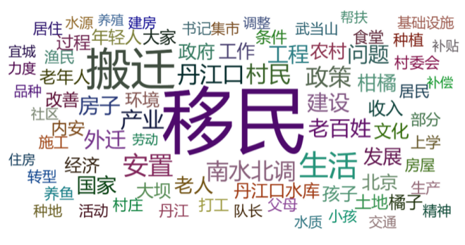 问卷显示,被调查者对南水北调了解不够深入,对工程移民问题普遍不了解,传统水文化认知度上,南水北调文化不如长江黄河文化知名度高,受访者对工程总体认知以“一般了解”为主。基于词频统计与访谈内容的考察对丹江口移民群体生存状态进行定量分析,呈现出移民群体主体性地位较高,对政府期望高,经历经济转型,移民代际分化、重视生态保护等特点。