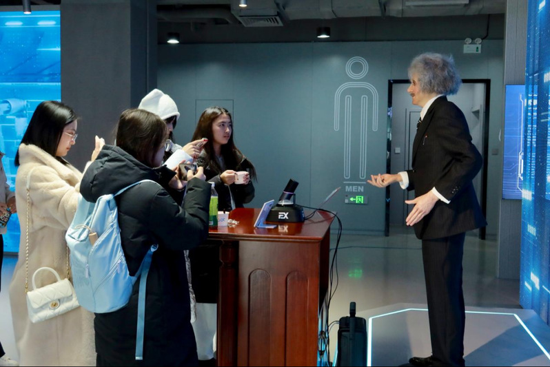 在现场,一款模拟爱因斯坦形象的超仿真机器人,能够结合人物背景与时代设定回答各种问题,答案准确严谨,令师生们印象深刻。同学们通过语音交互功能向其提问,切身感受到了人格化AI在科学传播与公众沟通中的潜在价值。
