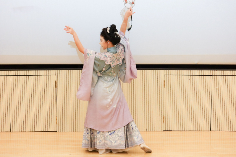 活动展示并发布了曹县2025年秋冬季新款汉服,中国传媒大学子衿汉服社社员以舞蹈、走秀展现汉服之美。