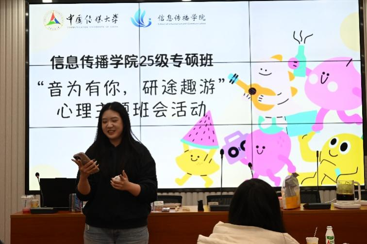 为帮助同学们缓解学业科研压力,强化班级情感联结,12月26日晚,信息传播学院25级专硕班在信息传播学院120教室成功举办“音为有你,研途趣游”团体心理辅导活动。