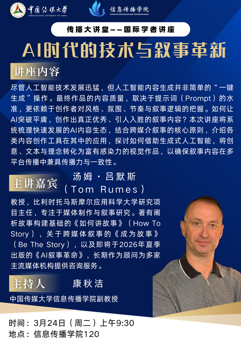 传播大讲堂国际学者讲座:AI时代的技术与叙事革新